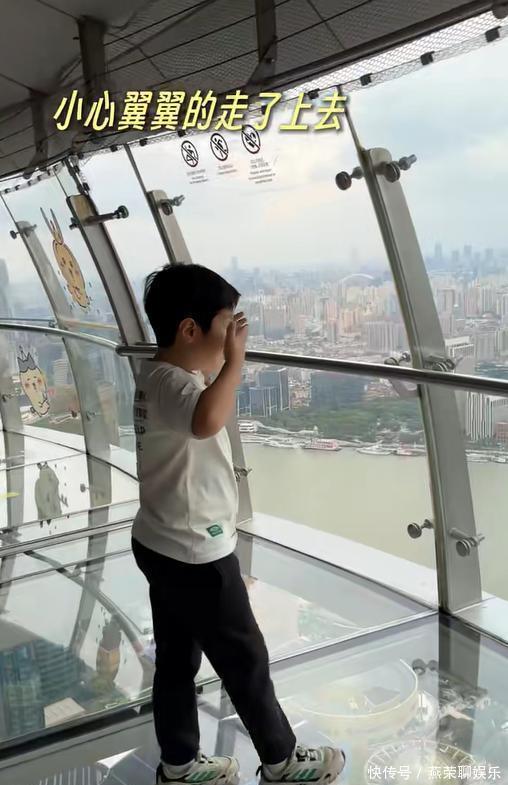 为了让儿子直观感受到上海,蔡琳还特意带儿子去了东方明珠。8岁的朴珉宇在东方明珠的玻璃栈道上面非常雀跃。